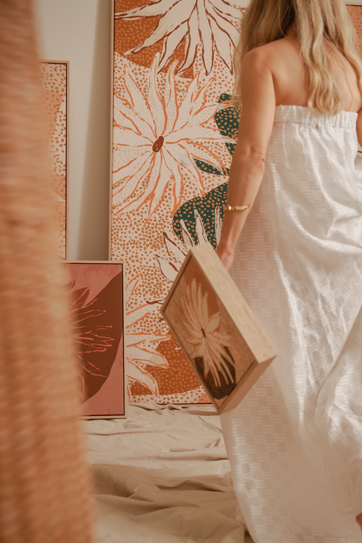 My canvas artworks are framed in a stunning quality oak timber that is raw, natural and simply beautiful. The gallery-style floating frame will arrive at your door, ready-to-hang, so you can start enjoying your artwork straight away.