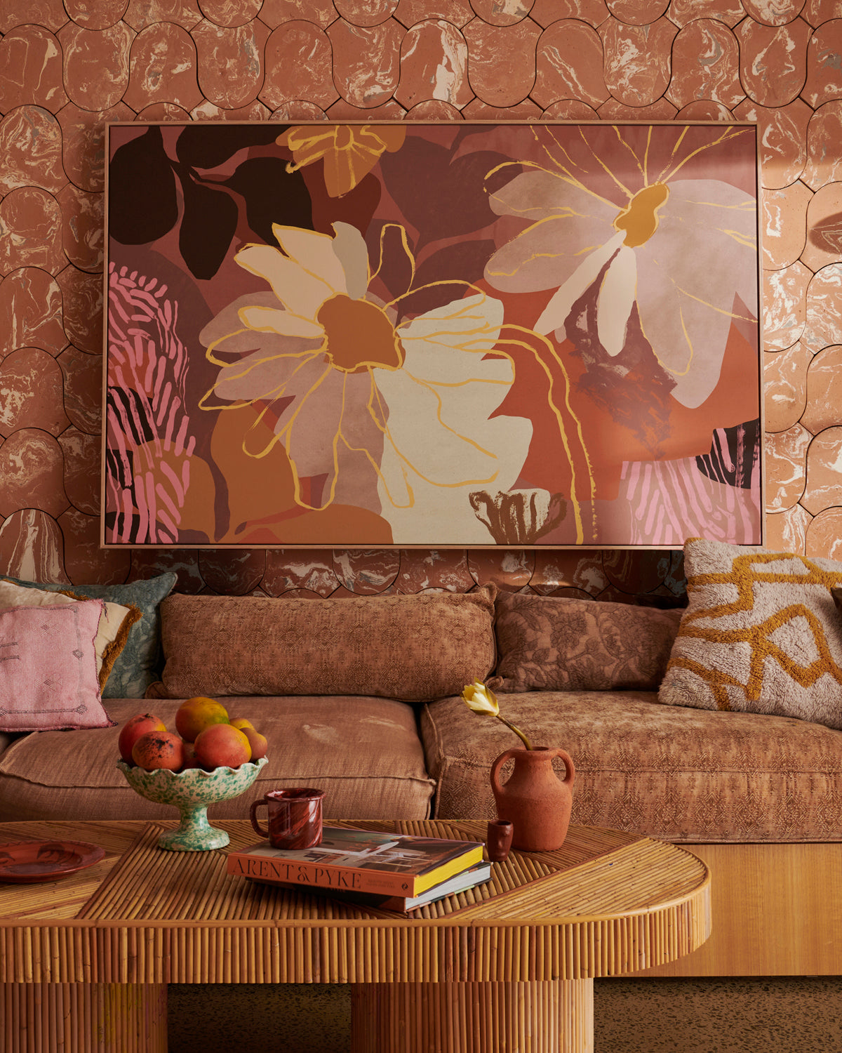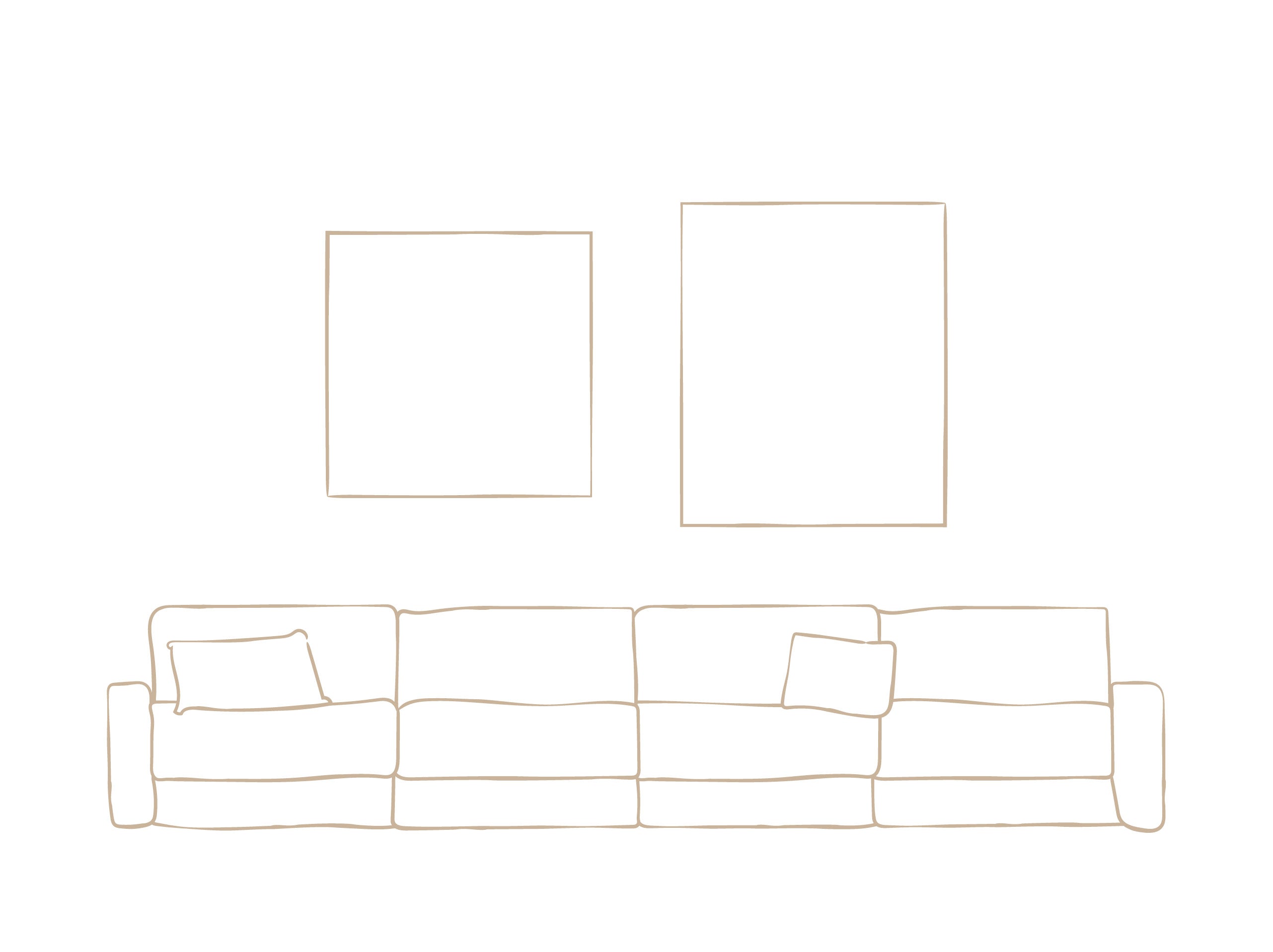 Lounges come in all shapes and sizes - it's a place you can really experiment with your art size combination and play with scale.